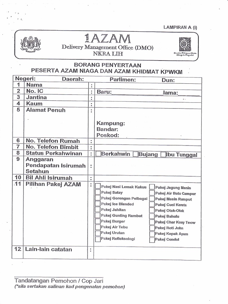 Adapun terkait besaran kenaikan tidak terlalu tinggi. Borang 1 azam 1 Azam Program 1 Azam termasuk Azam Niaga dan Azam Khidmat telah menarik pelbagai individu untuk menyertai sebanyak 20 perniagaan mikro. 1 tahun di bawah Projek AZAM Tani.